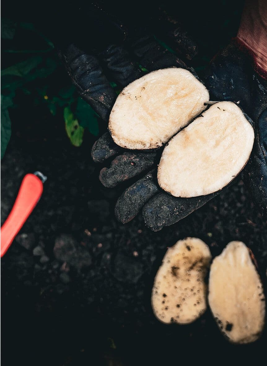 Antes de sembrar, preparamos el suelo con nutrientes y rotación de cultivos, asegurando un proceso sustentable. Una vez cosechadas, las papas se limpian con agua a alta presión, se pelan con tecnología avanzada y se cortan con precisión para lograr su tamaño único. Luego, un blanqueo en agua caliente y una breve fritura les dan su color dorado antes de ser congeladas y enviadas a los locales.